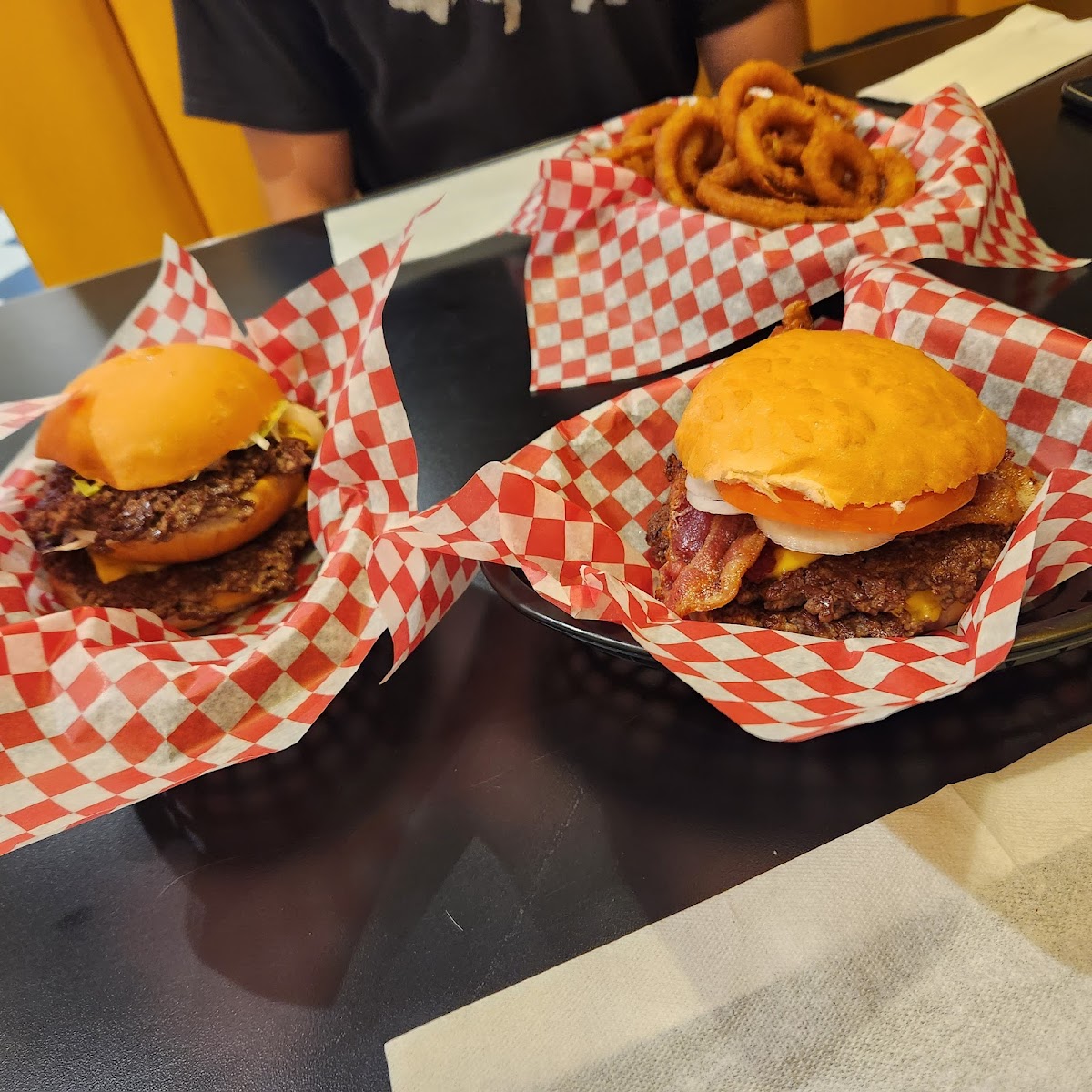Stepping into this 50s-style diner was like a delicious trip back in time, and let me tell you, the fresh burgers and shakes are absolutely out of this world! From the moment I walked in, the vibrant checkerboard floor, the mustard yellow booths and black & white decor set the perfect nostalgic scene, and the aroma of sizzling patties just sealed the deal. I ordered a single burger. The patty was clearly fresh, cooked to juicy, flavorful perfection. The toppings were crisp. lettuce, tomato, onion, and pickles. I went with a chocolate shake, and it was thick, & creamy without being overly sweet. The service was friendly, efficient, and with a genuine smile that added to the overall welcoming atmosphere. We’ll definitely return!